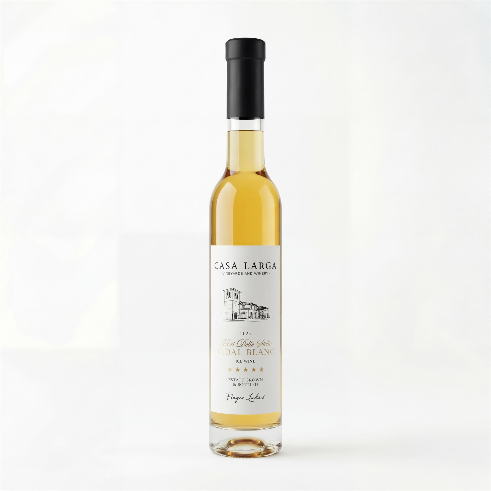 Crafted in the tradition of the classic German Eiswein technique, Casa Larga's 2024 Fiori Vidal Blanc Ice Wine is a rare and labor-intensive expression of the Finger Lakes' unforgiving winters. This vintage greets the eye with a light golden hue and delivers a bright, light-bodied character on the palate.